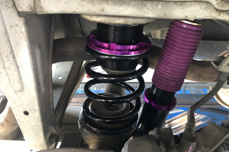今回は、前回のアルトワークスに新しい車高調を取付けていきます。